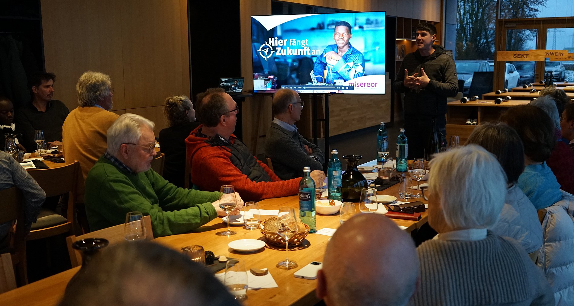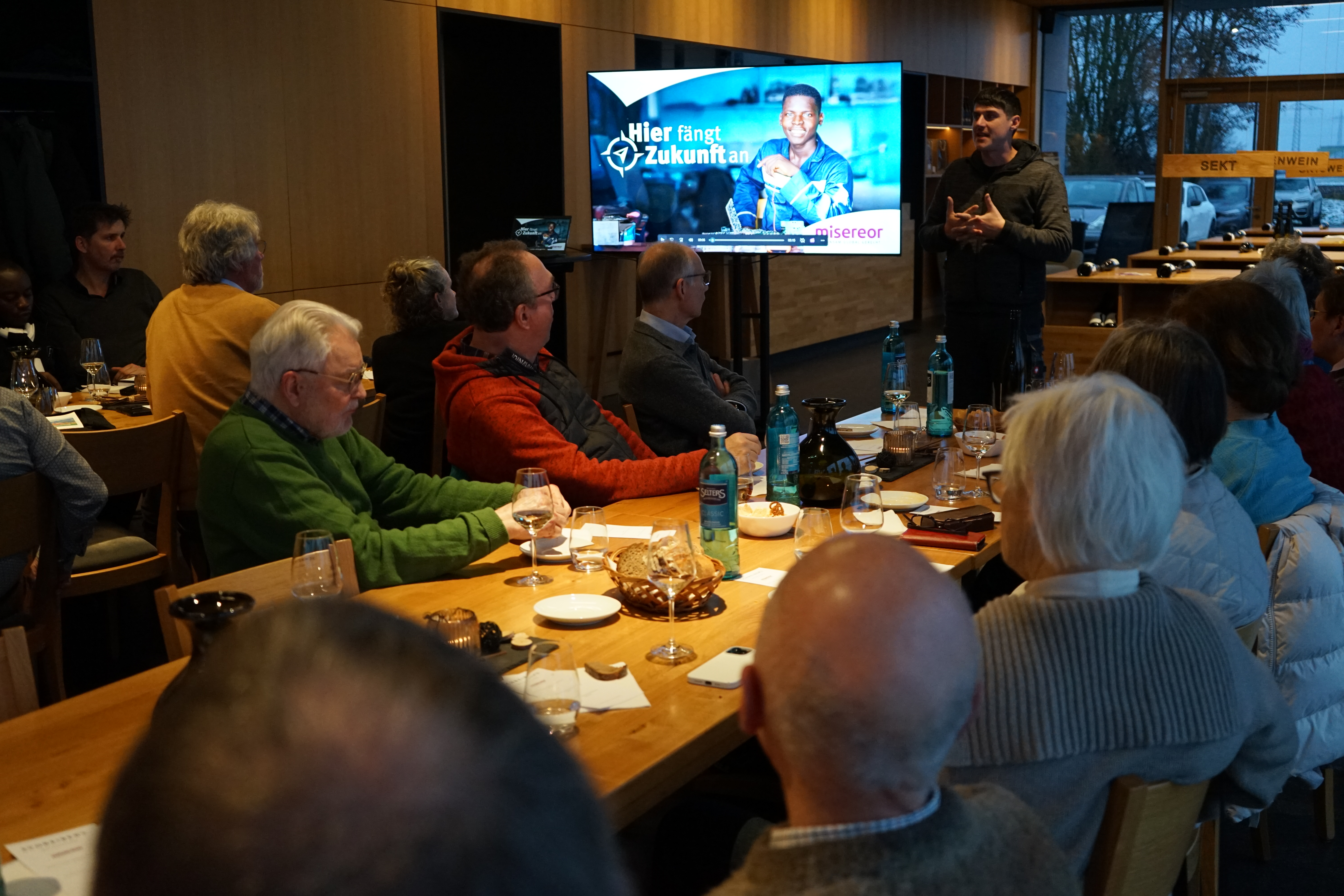 Wie gut das gelingen kann, zeigten Dr. Andreas Frick, Misereor-Hauptgeschäftsführer, und Father Reuben Mbunwe aus der Diözese Kumbo in Kamerun während der Weinprobe auf und informierten, welche Ausbildungsprojekte CODAS Caritas in Kamerun anbietet, um junge Menschen aus der Arbeitslosigkeit in das Berufsleben zu begleiten. „Kamerun ist ein junges Land. Der Altersdurchschnitt liegt bei 19,4 Jahren“, berichtete Frick. Misereor helfe den Menschen, „ihre Würde zu entdecken“ und gebe ihnen eine Chance „an sich zu glauben“.